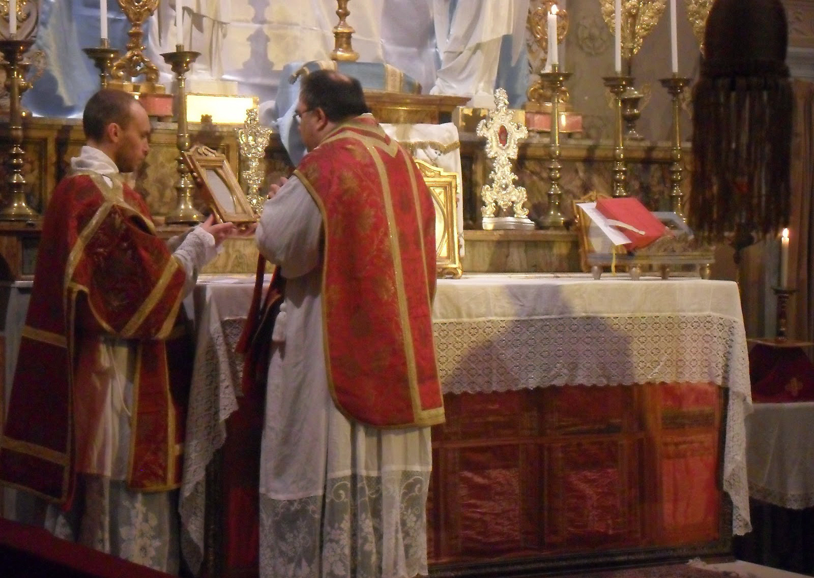 También el pasado viernes 30 de noviembre, festividad de San Andrés Apóstol, el P. Andrea Leonesi, párroco de la iglesia del Sagrado Corazón (conocida como iglesia "de los sacos") de Tolentino, provincia de Macerata, en la región de Las Marcas (Italia), ofició la solemne Santa Misa tradicional, asistido por el P. Jean Baptiste, FI (Franciscano de la Inmaculada), sacerdote originario de la Martinica y por Fray Cristoforo, FI, de Francia, que actuaron como diácono y subdiácono, respectivamente. Fray Nazareno Antonelli, FI, fue Maestro de Ceremonias. El servicio litúrgico fue oficiado por los ministros de los "grupos estables" de Pescara, Campocavallo y Tolentino. La música elegida para la ocasión fue la Misa Pontifical Primera de Lorenzo Perosi, interpretada por la Schola Cantorum "Giuseppe Bezzi", de la Basílica de San Nicolás, dirigida por el Maestro Andrea Carradori. Destacó la participación de la soprano Anna Maria Paoloni Mazza. Messa in Latino.